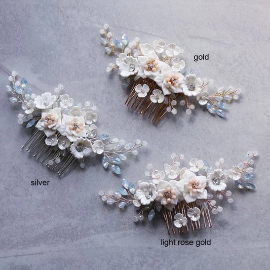 華やかで繊細なオパールフラワーが魅力のヘアアクセサリーです。