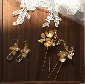 華やかで上品な存在感を放つ、ゴールドクリアフラワーヘアアクセサリー・ピアスセットの登場です!