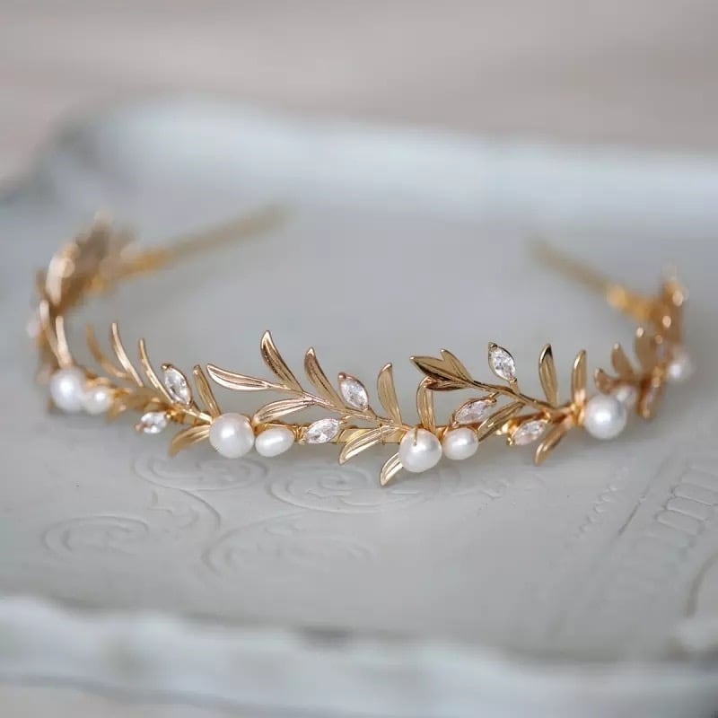 ウェディング用のリーフ型ヘアアクセサリー カチューシャタイプ