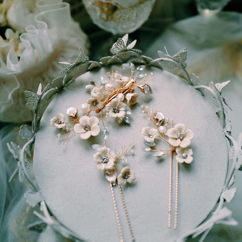 ガーデンウェディングにおすすめの可憐な小花ヘアパーツ。