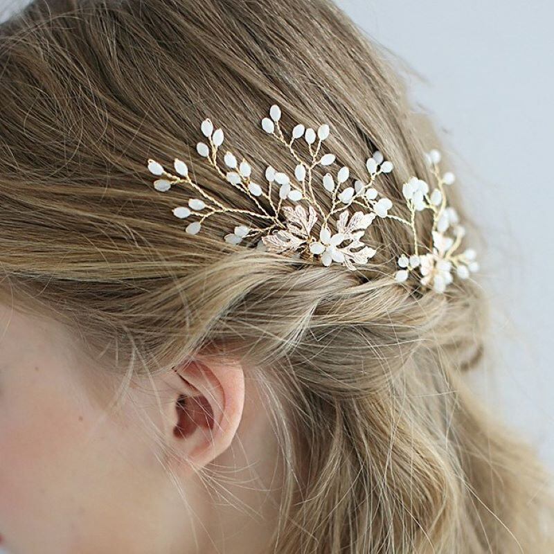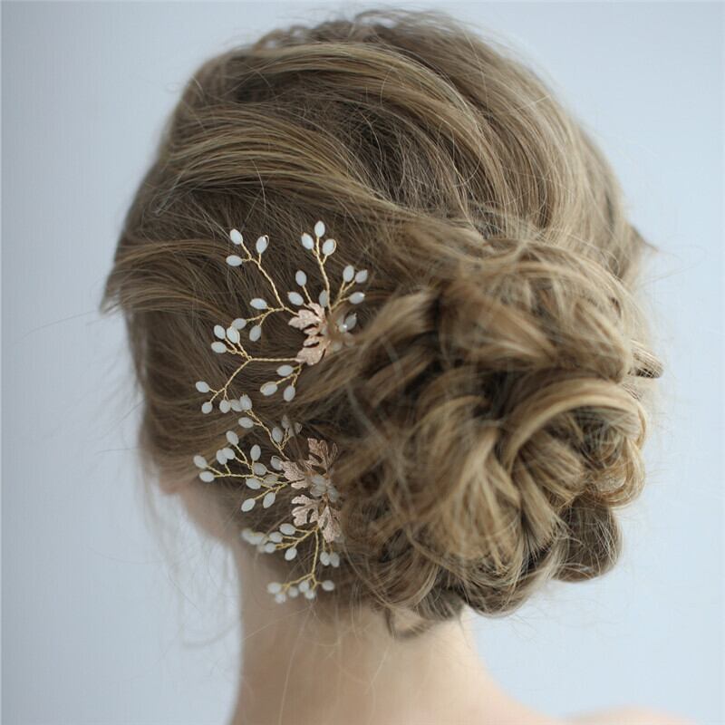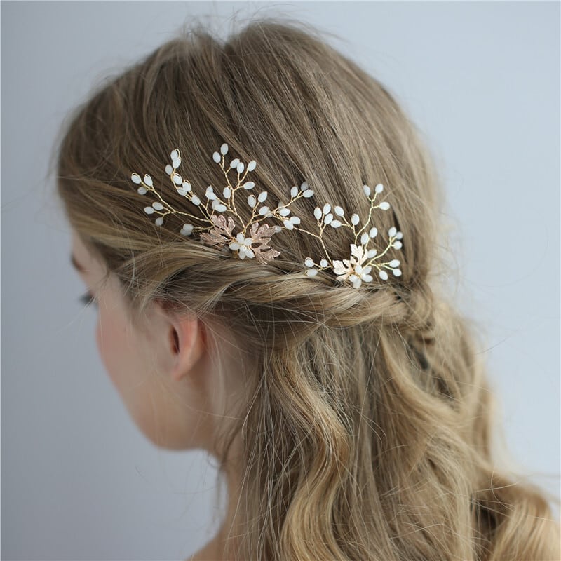 オパールとリーフが繊細で優しい印象のヘアアクセサリー