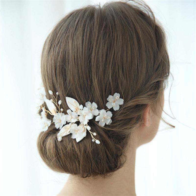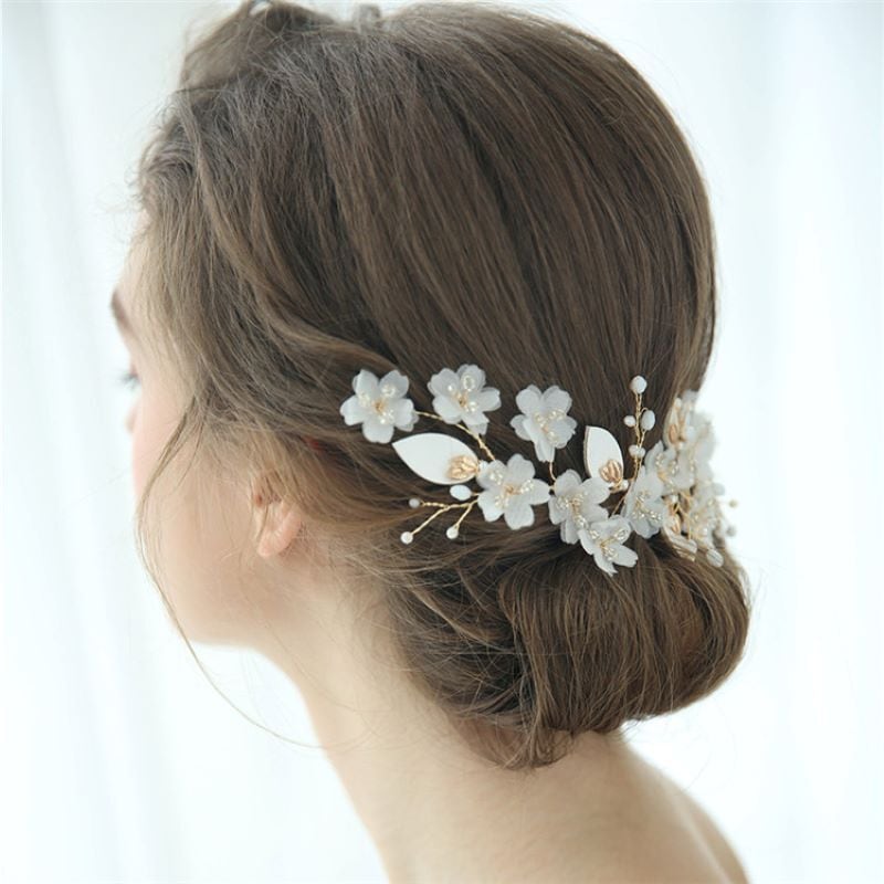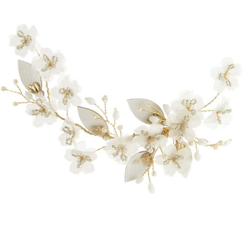 シフォンのフラワーとリーフのフェミニンなヘアアクセサリー