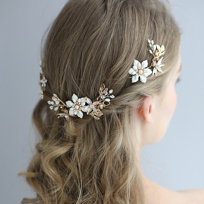 ビンテージ風のホワイトフラワーヘアアクセサリー3点set