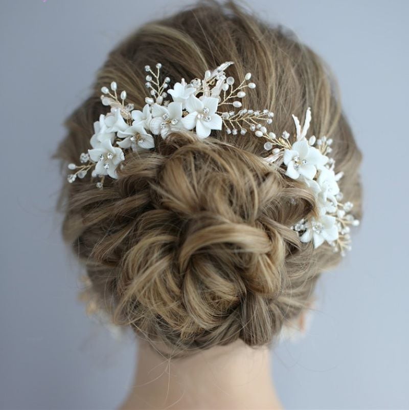 純白のフラワーが繊細でフェミニンなヘアアクセサリー。
