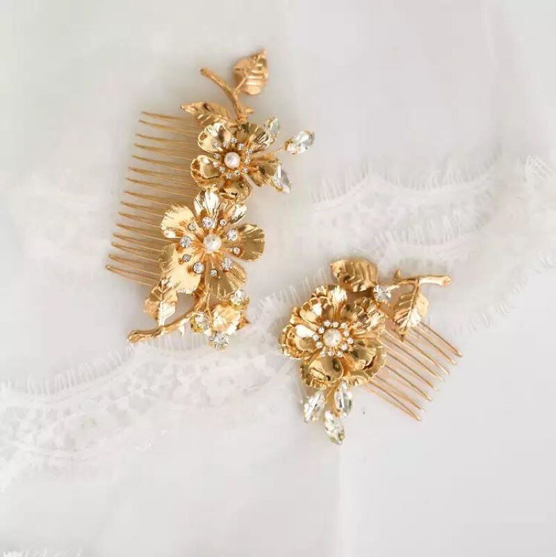 ゴールドフラワービジューヘアコーム