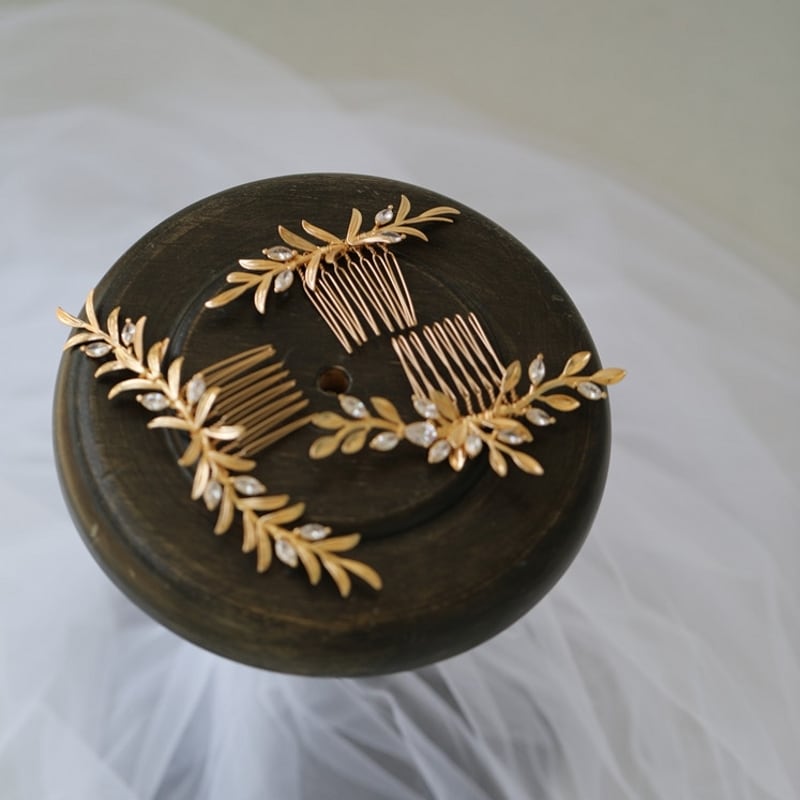 ゴールドリーフとジルコニアのヘアコーム3点set