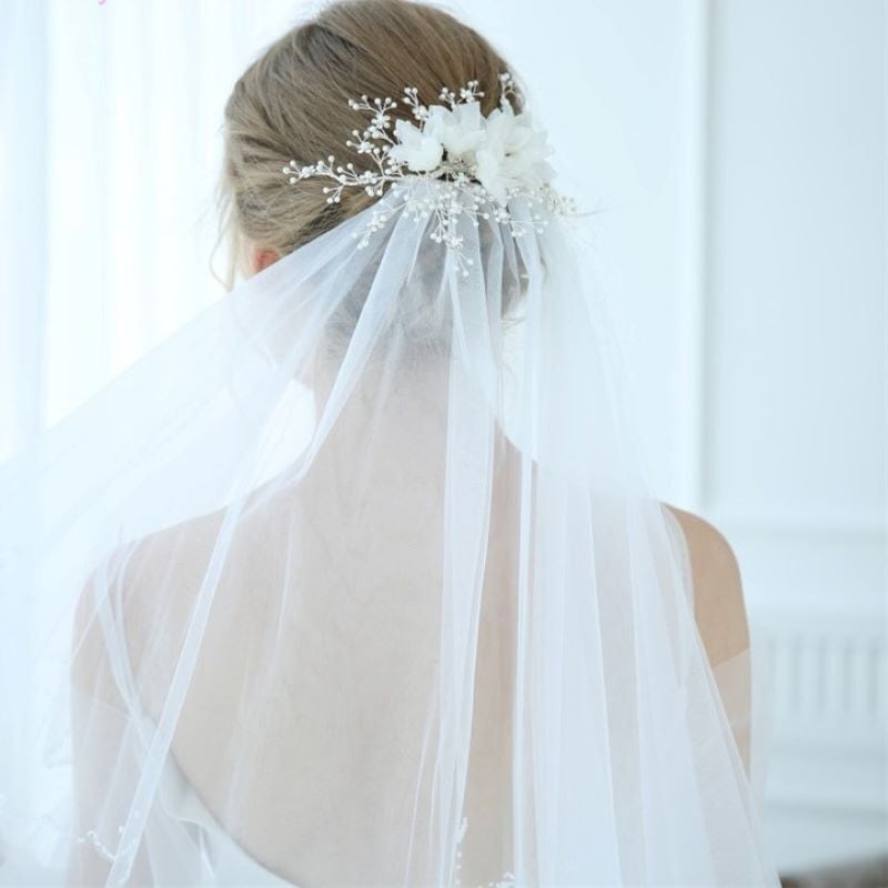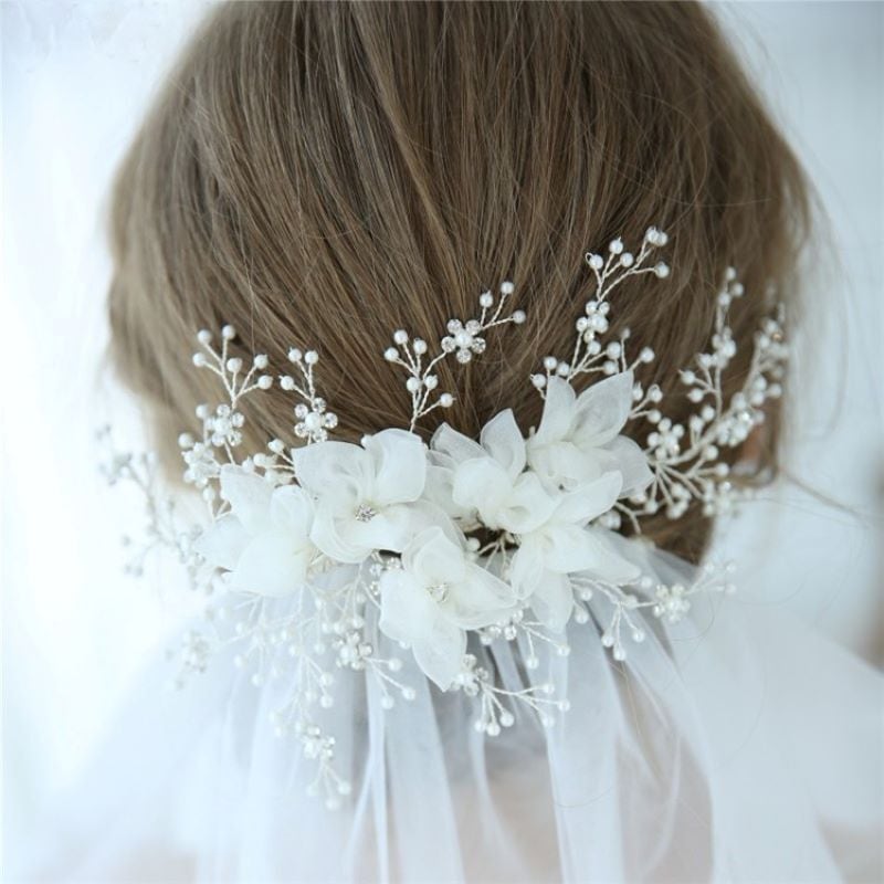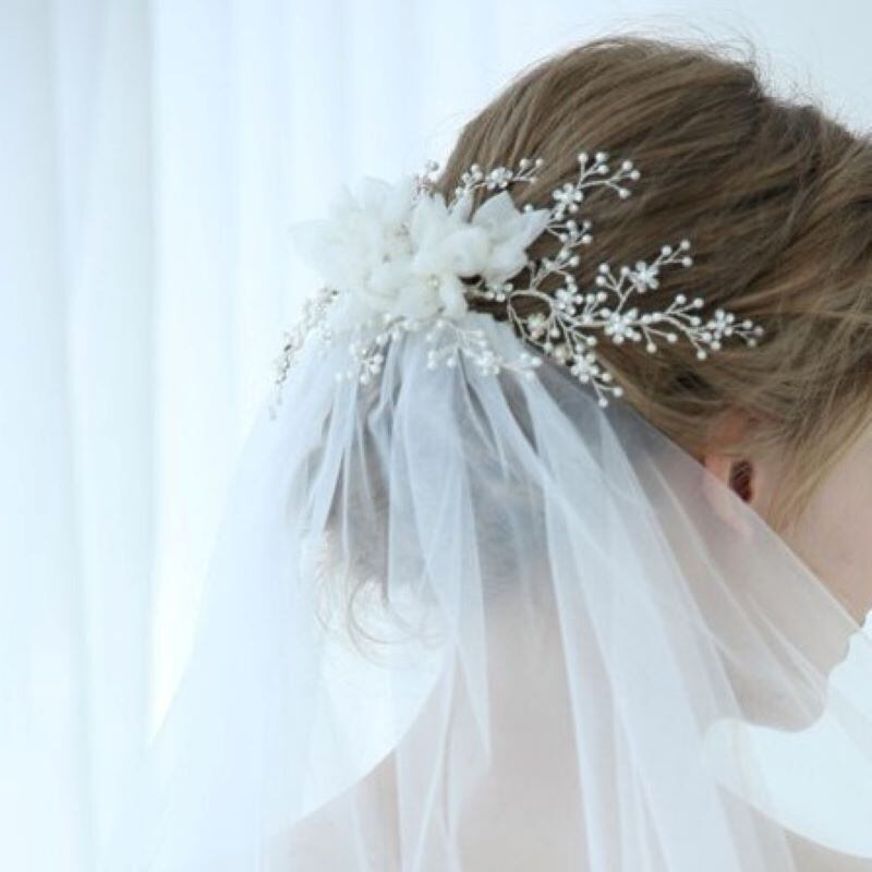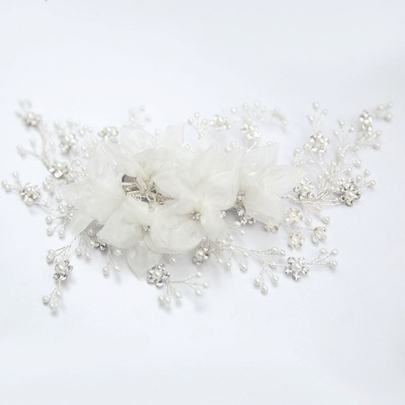 シルバーチュールフラワーウェディングヘアアクセサリー