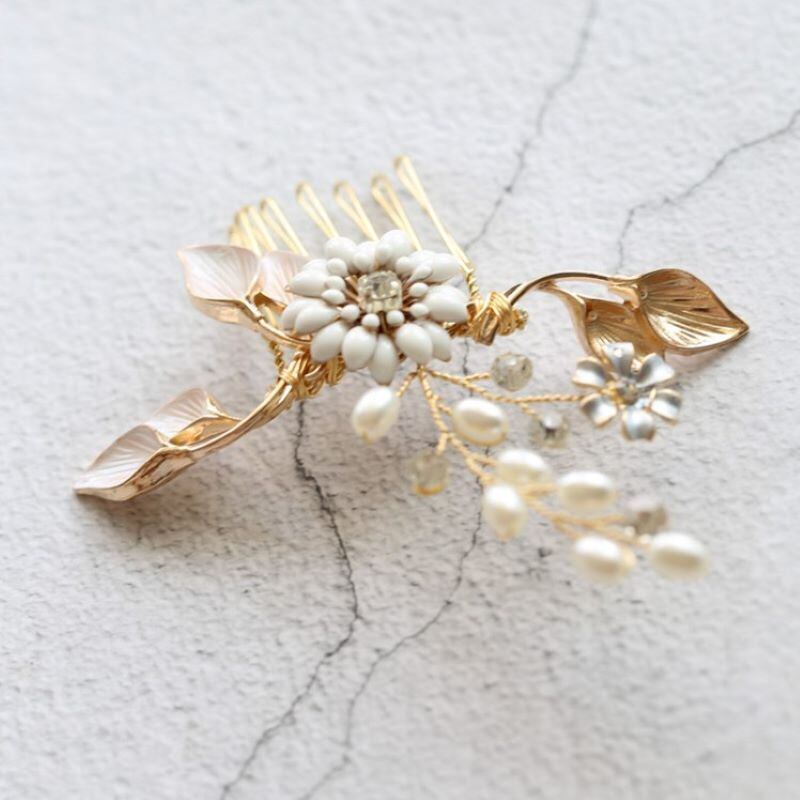 パールとフラワーが上品でナチュラルなヘアコームです。