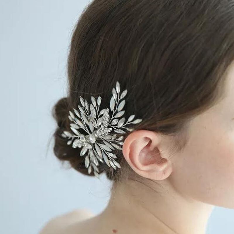 クリスタルとオパールのシンプルできれいめヘアアクセサリー