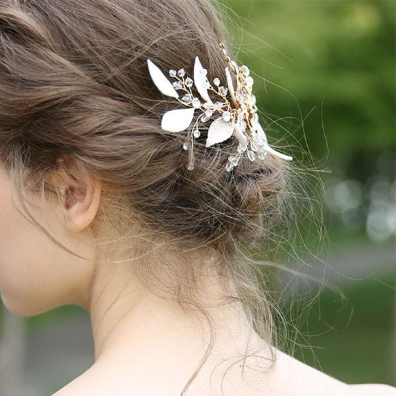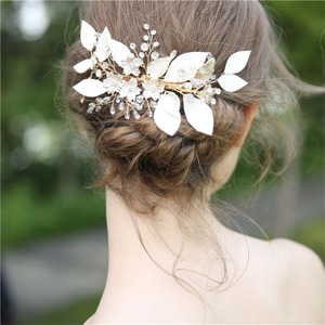 リーフとクリスタルビーズがナチュラルなヘアアクセサリー。