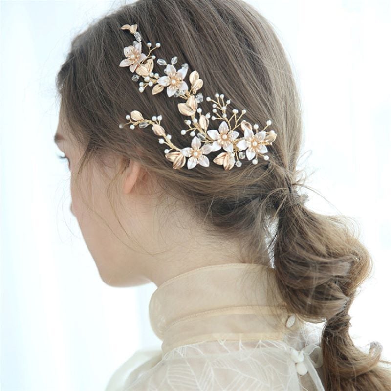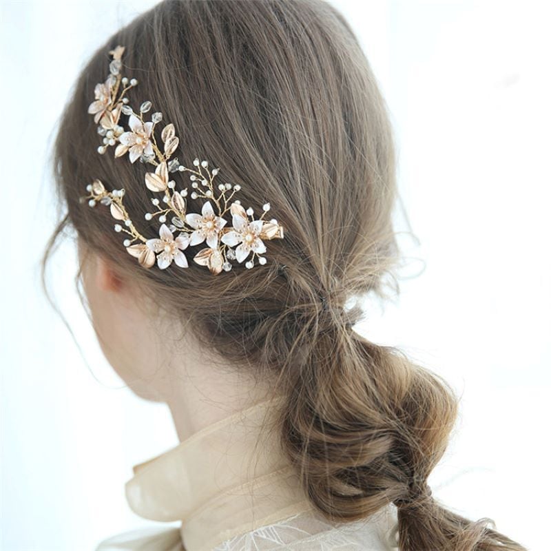 ゴールドフラワー小枝ヘアクリップ