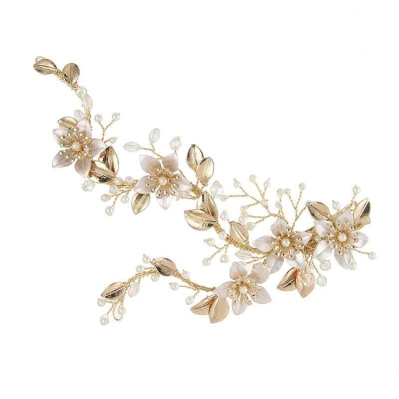 ゴールドフラワーとリーフが華やかなヘアアクセサリー