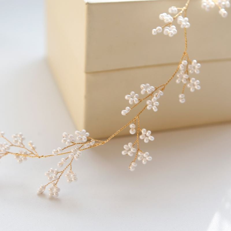 フラワーのビーズが可愛い小枝ヘアアクセサリー。