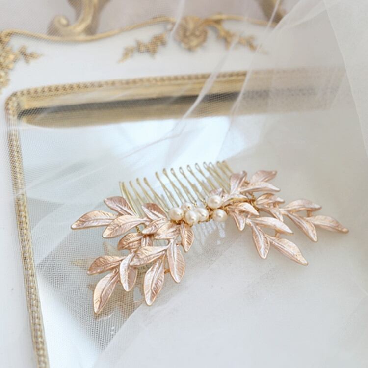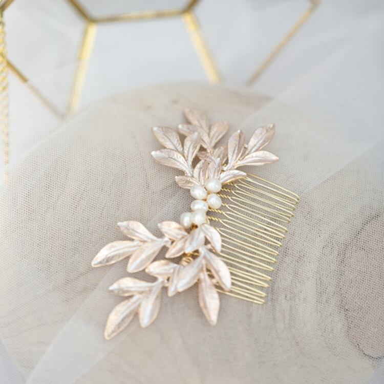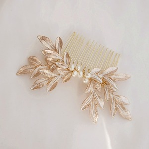 パールとリーフがシンプルでナチュラルなヘアコーム