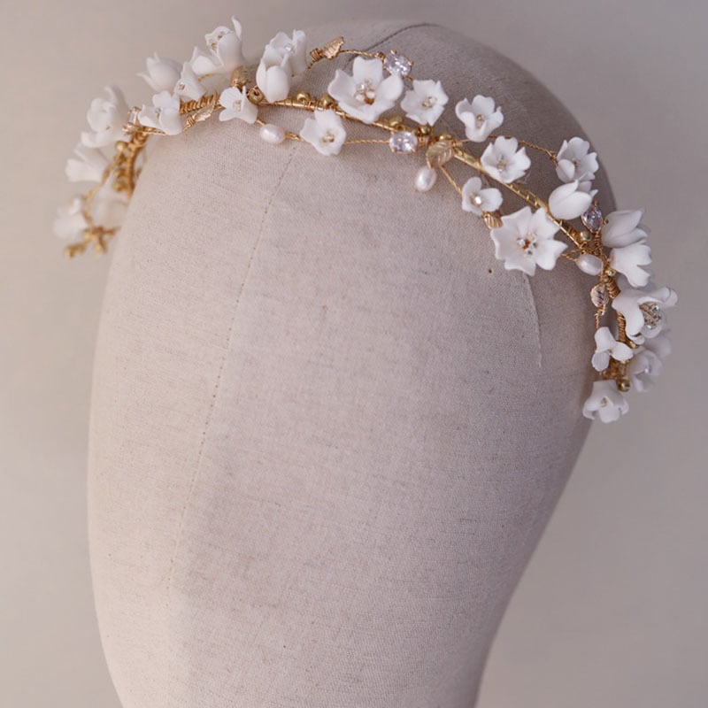 クレイフラワーのクラウンタイプのヘアアクセサリー