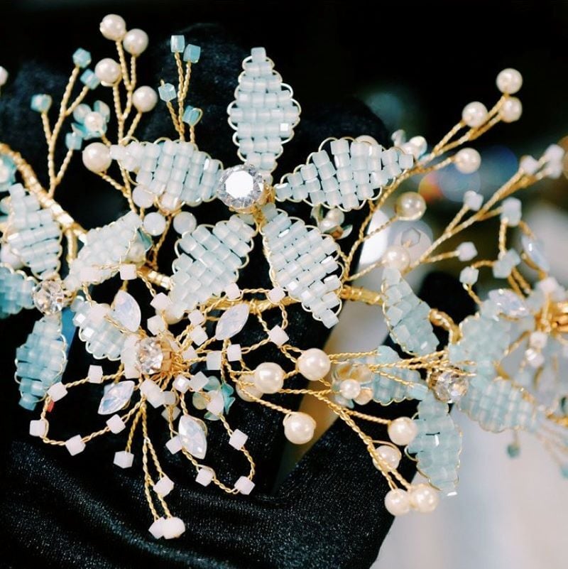綺麗で繊細なヘアパーツはウェディングシーンにぴったり。