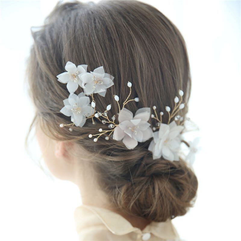 繊細なフェミニンなヘアパーツはウェディングシーンにぴったり。