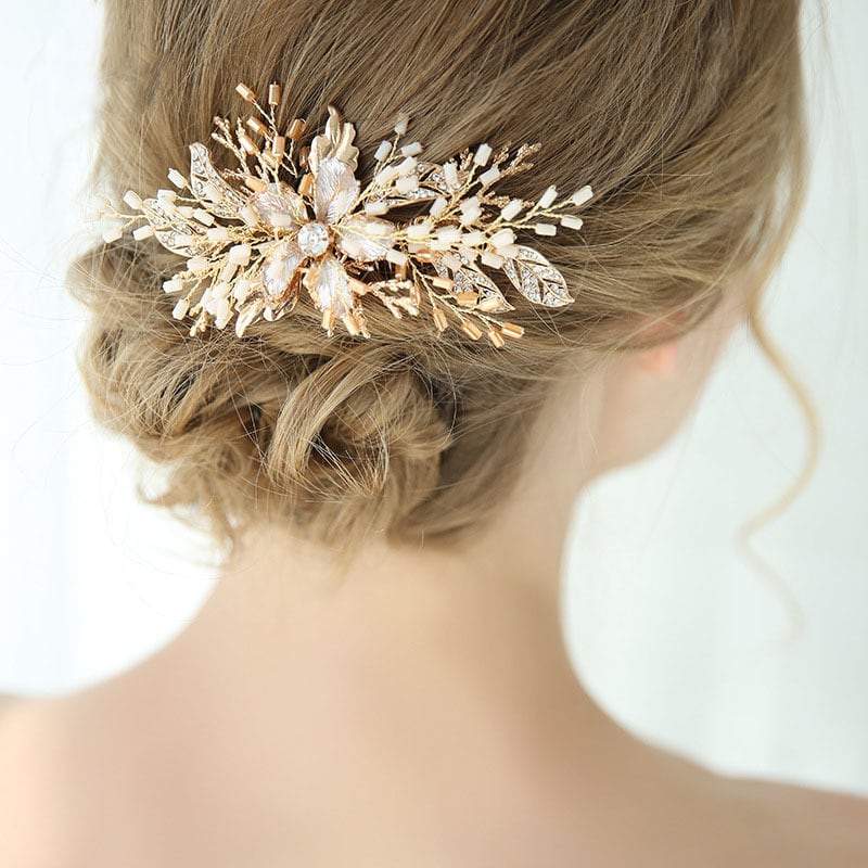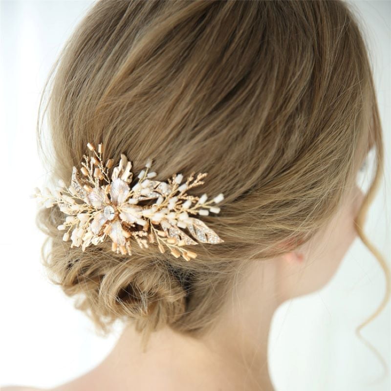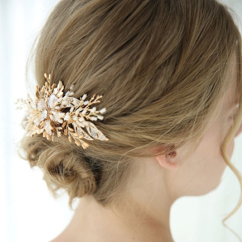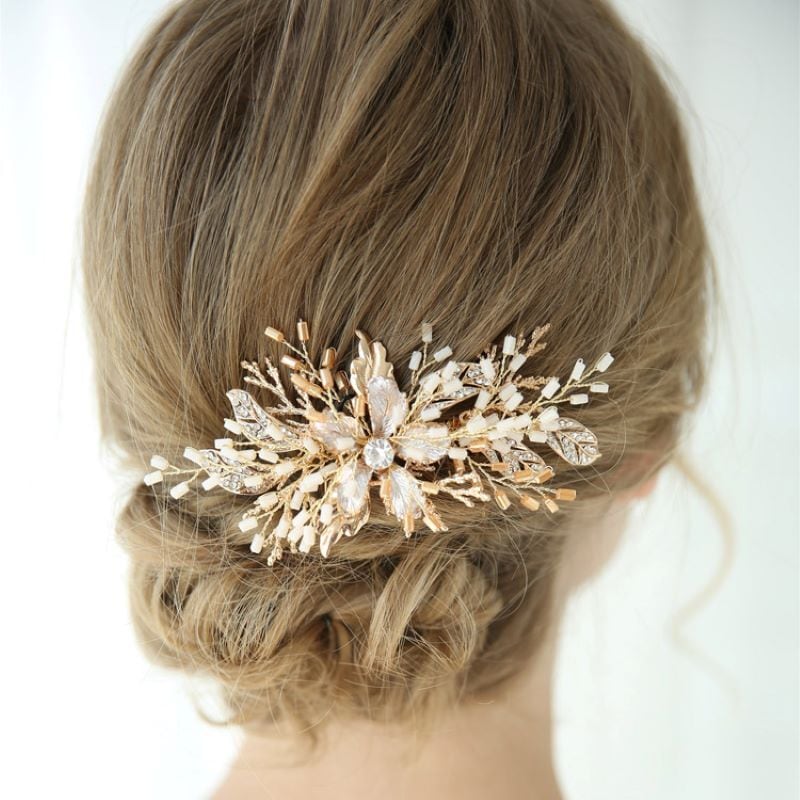 ゴールドフラワーのヘアアクセサリー。コームタイプ。