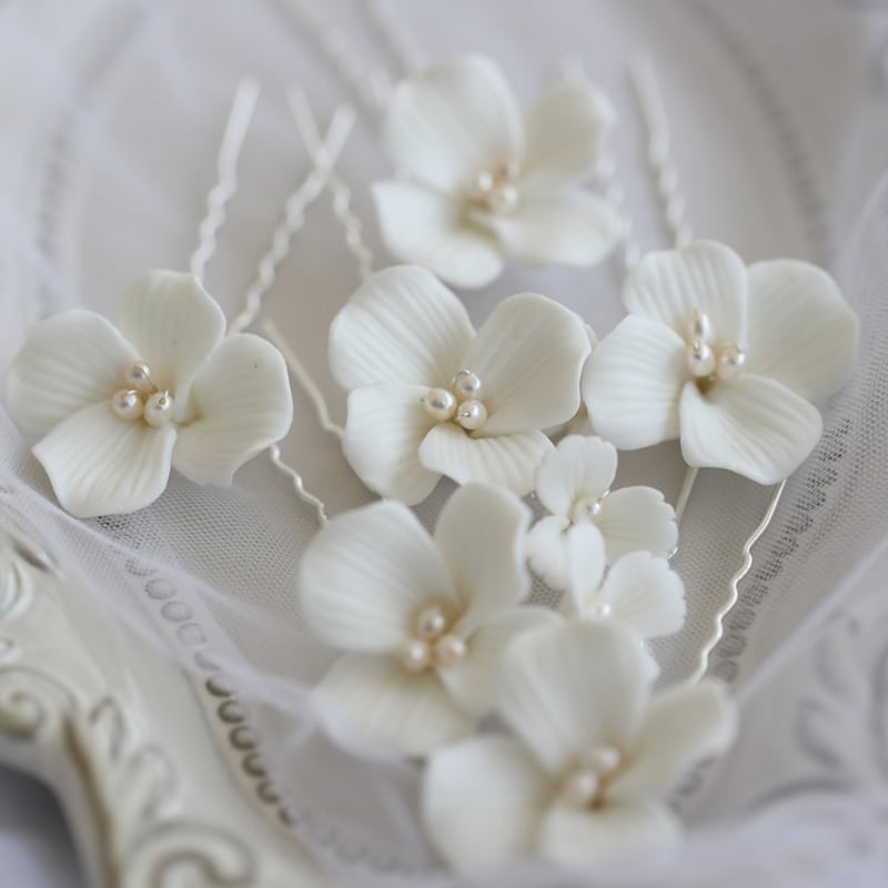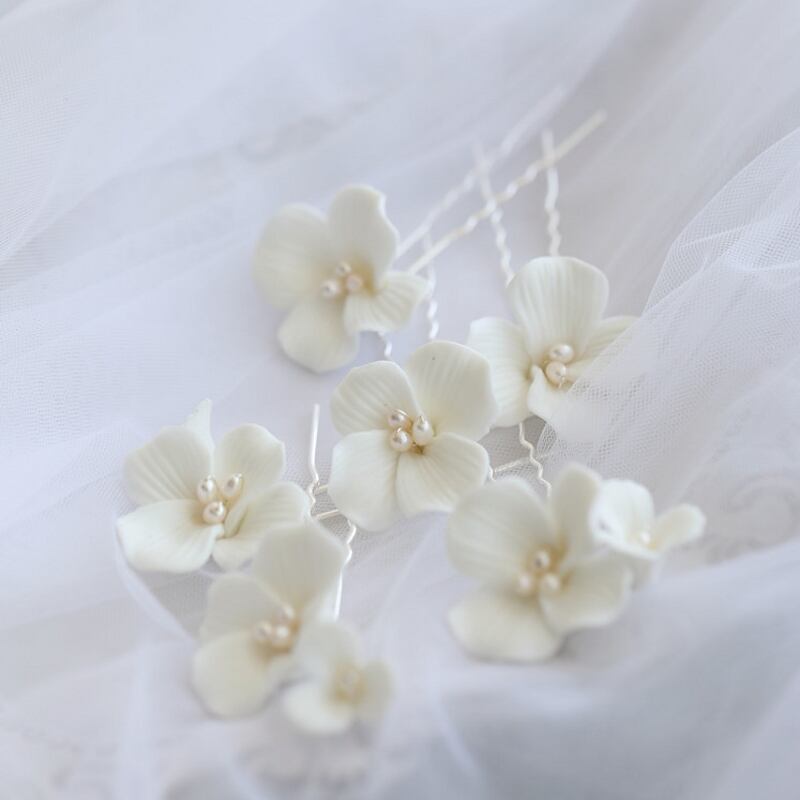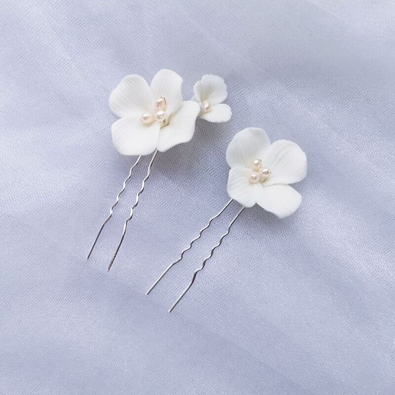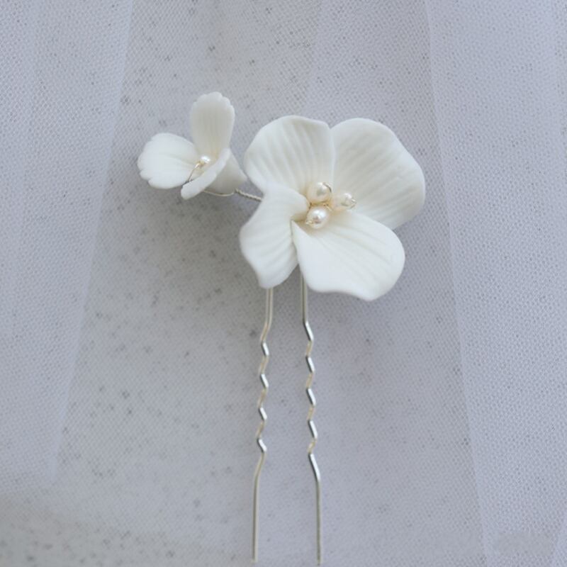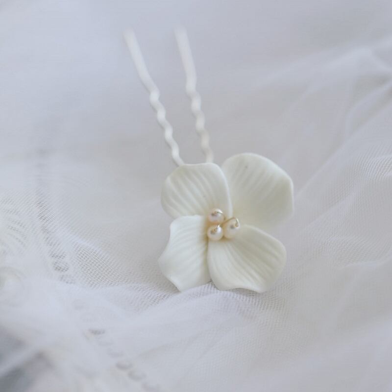 ホワイトフラワーが清楚でフェミニンなヘアピンタイプ。
