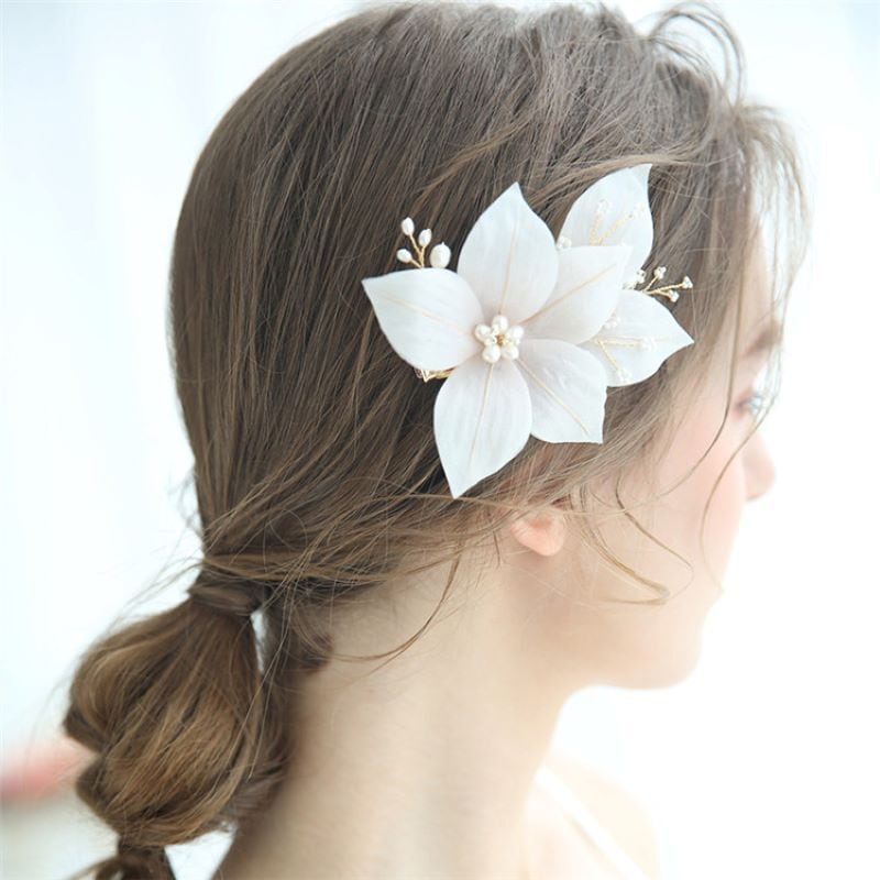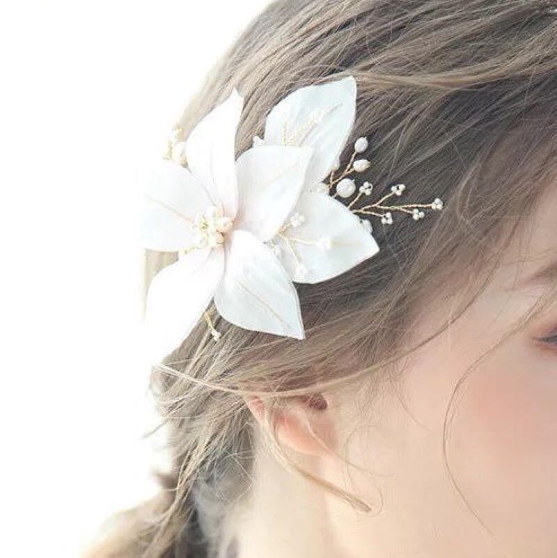 ナチュラルなヘアクリップはどんなドレスラインにもおすすめ。