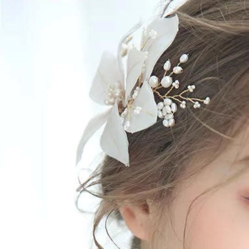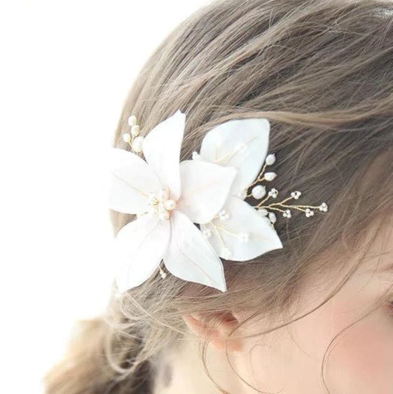 ワンポイントホワイトフラワーヘアクリップ
