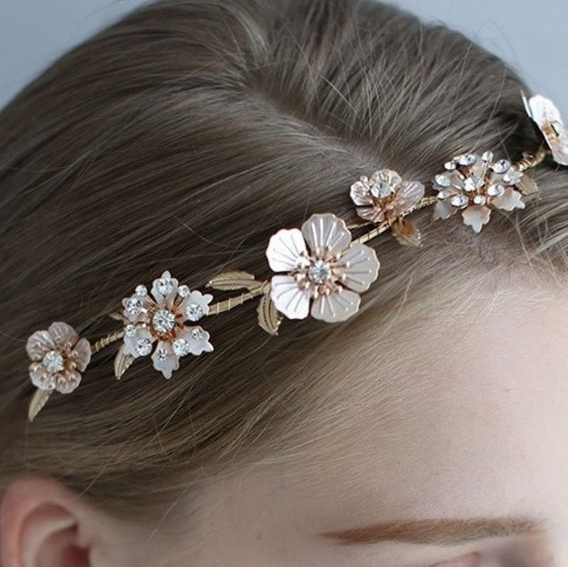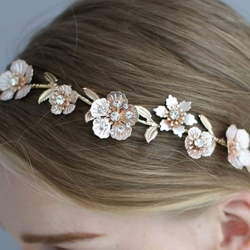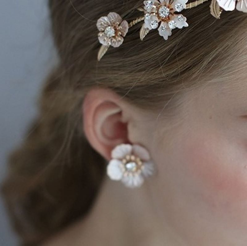 ビンテージフラワーのヘアアクセサリーとピアスのセット。ヘッドバンドタイプ。