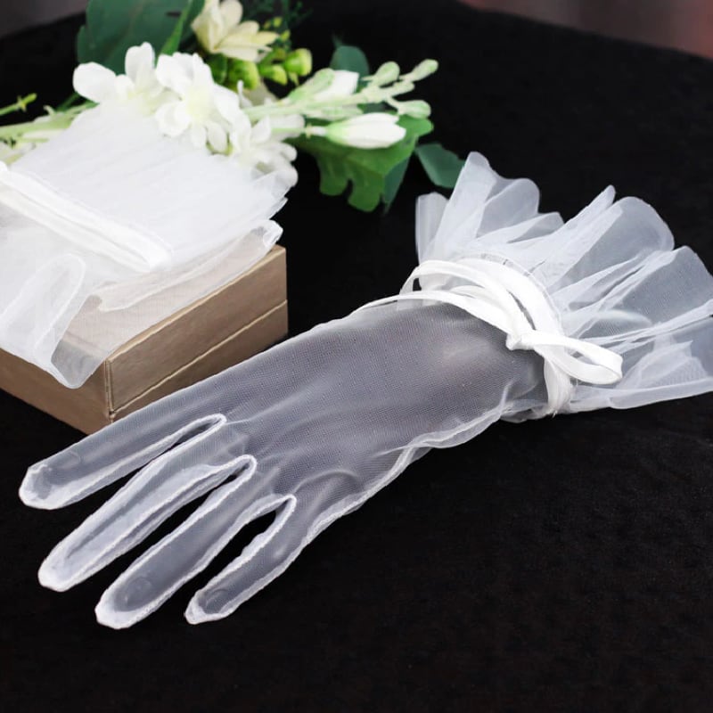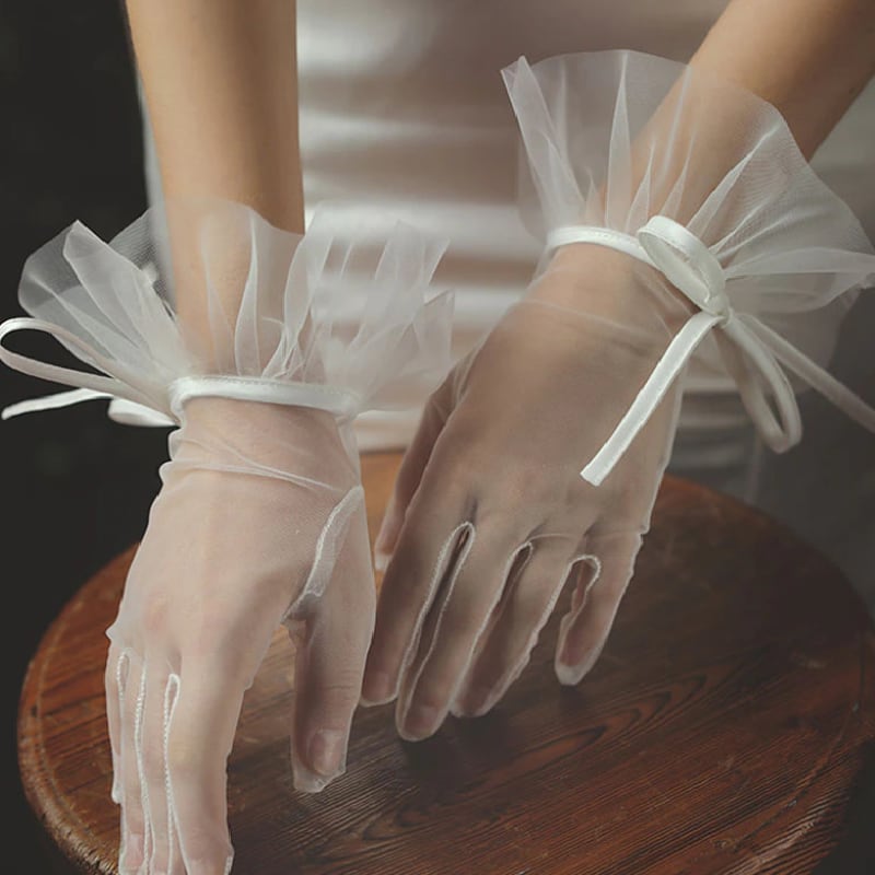 リボンとチュールのショートグローブ。