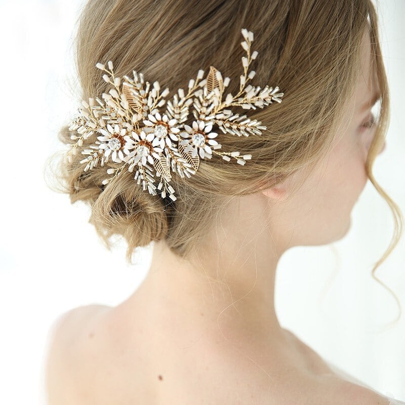 ゴールドが華やかで艶めくヘアアクセサリー。
